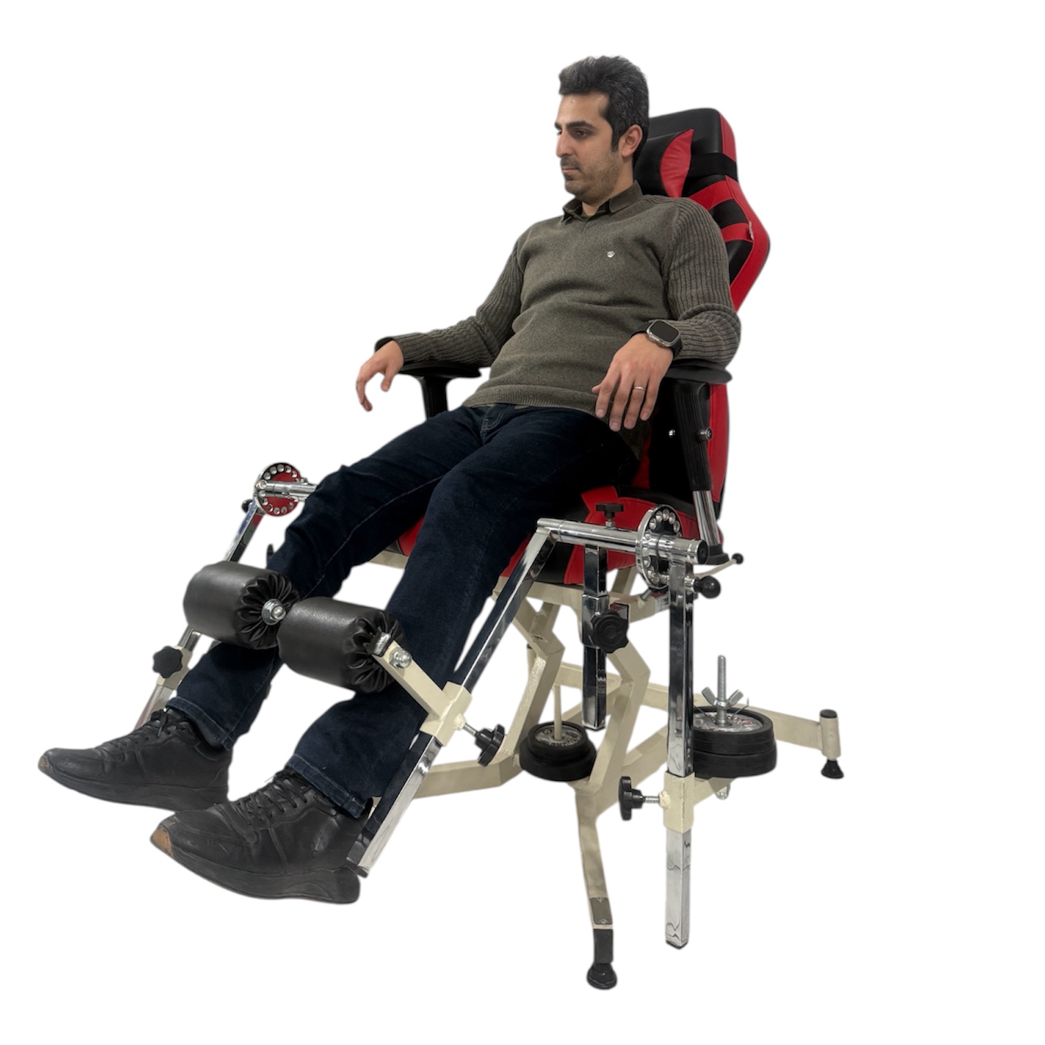 راحتی بیماران در این دستگاه تضمین شده. این دستگاه برای تمرین عضله چهارسر ران
